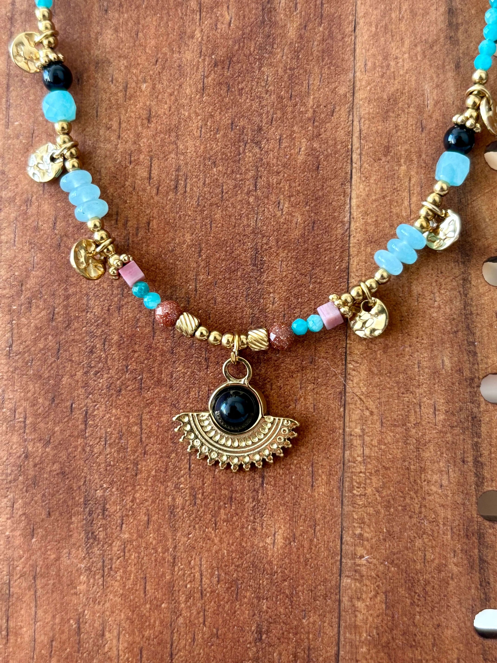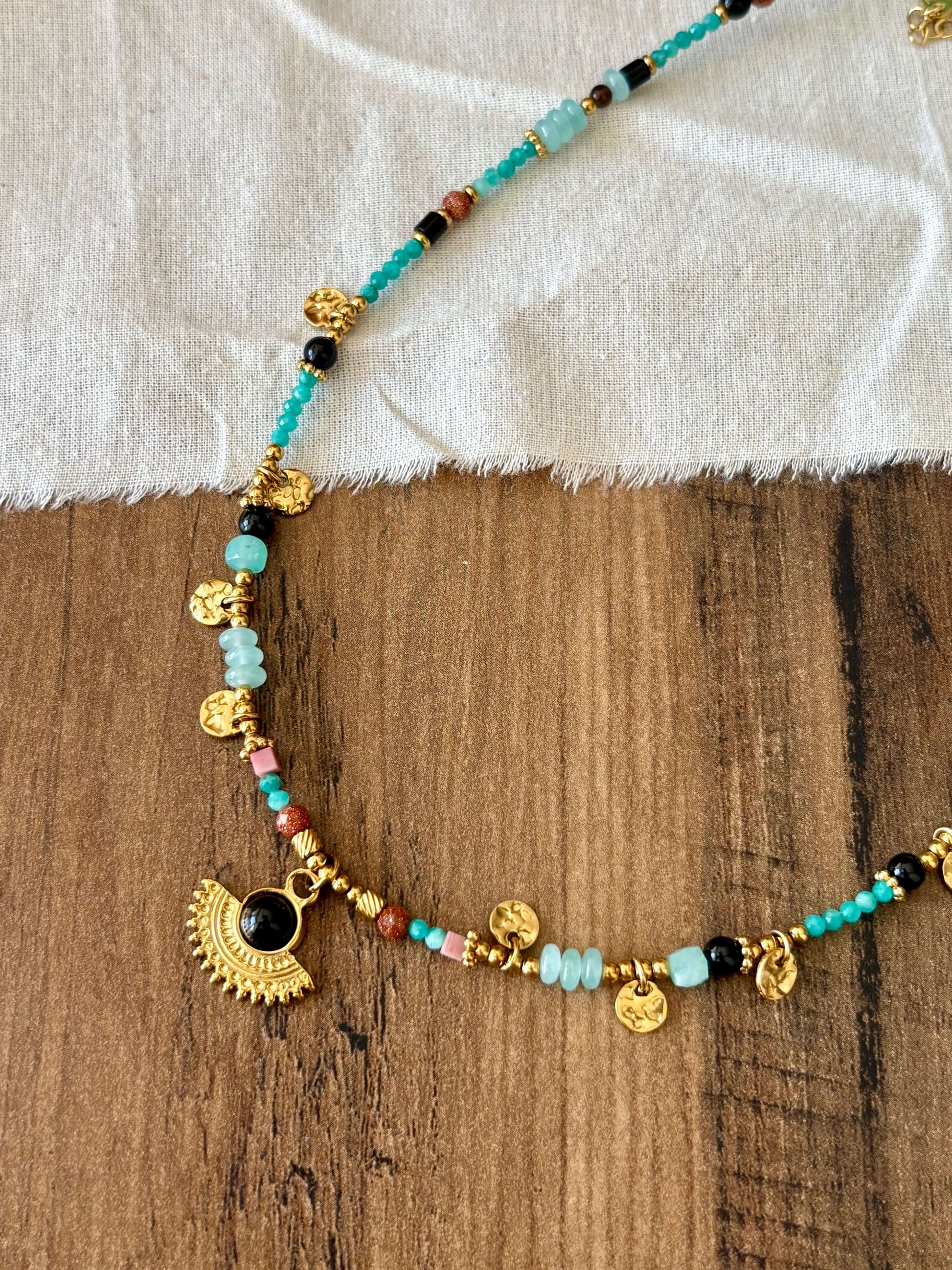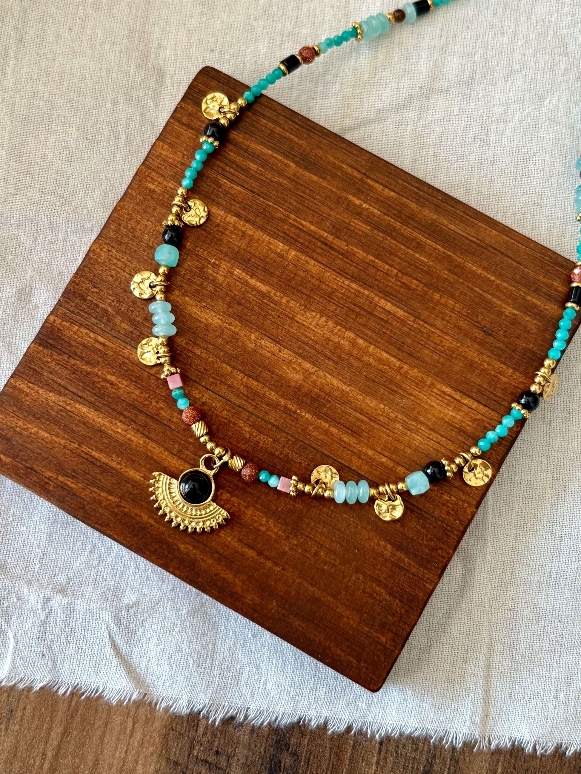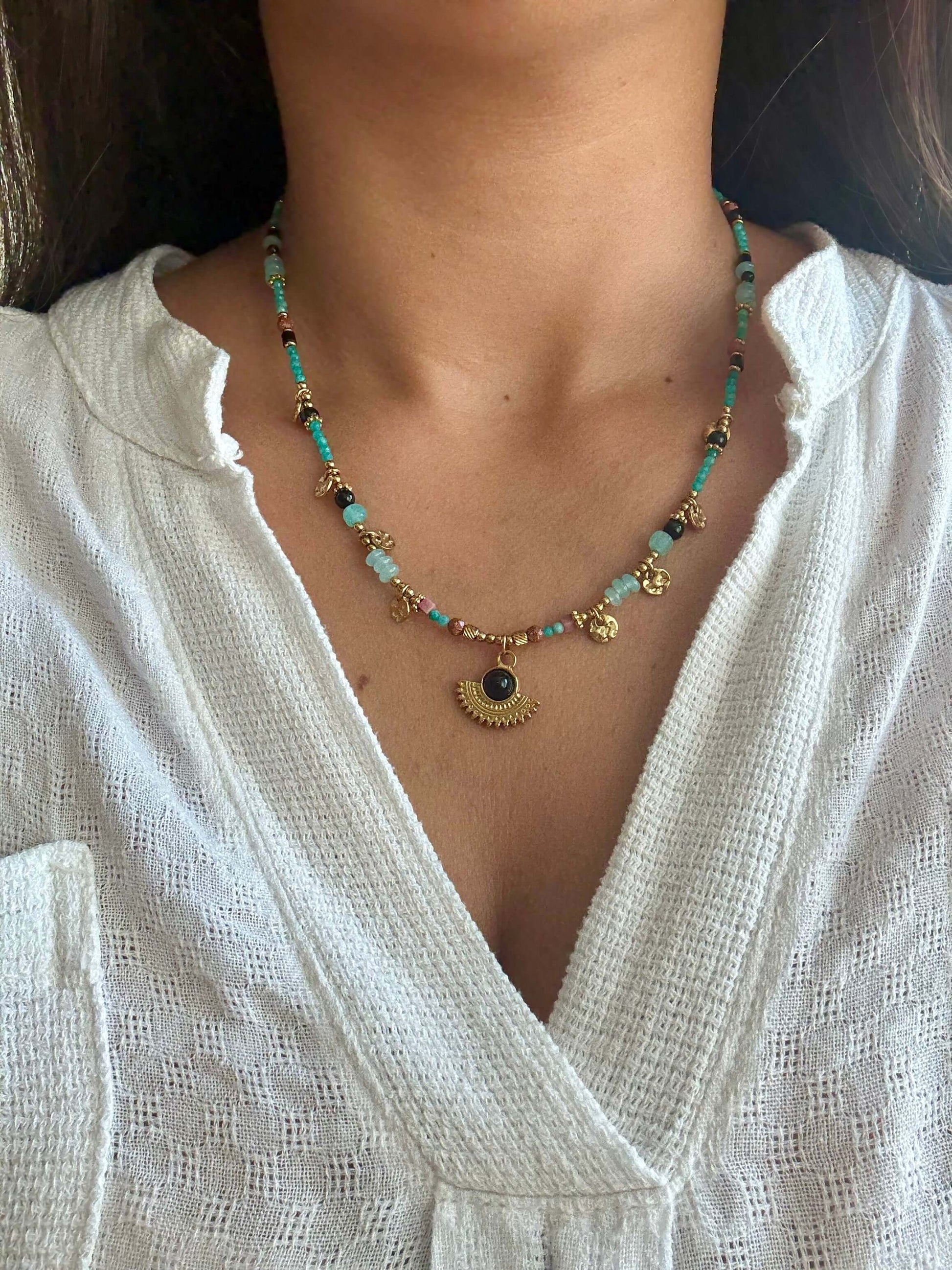 Colar de contas turquesa e pendente étnico | Minhámê