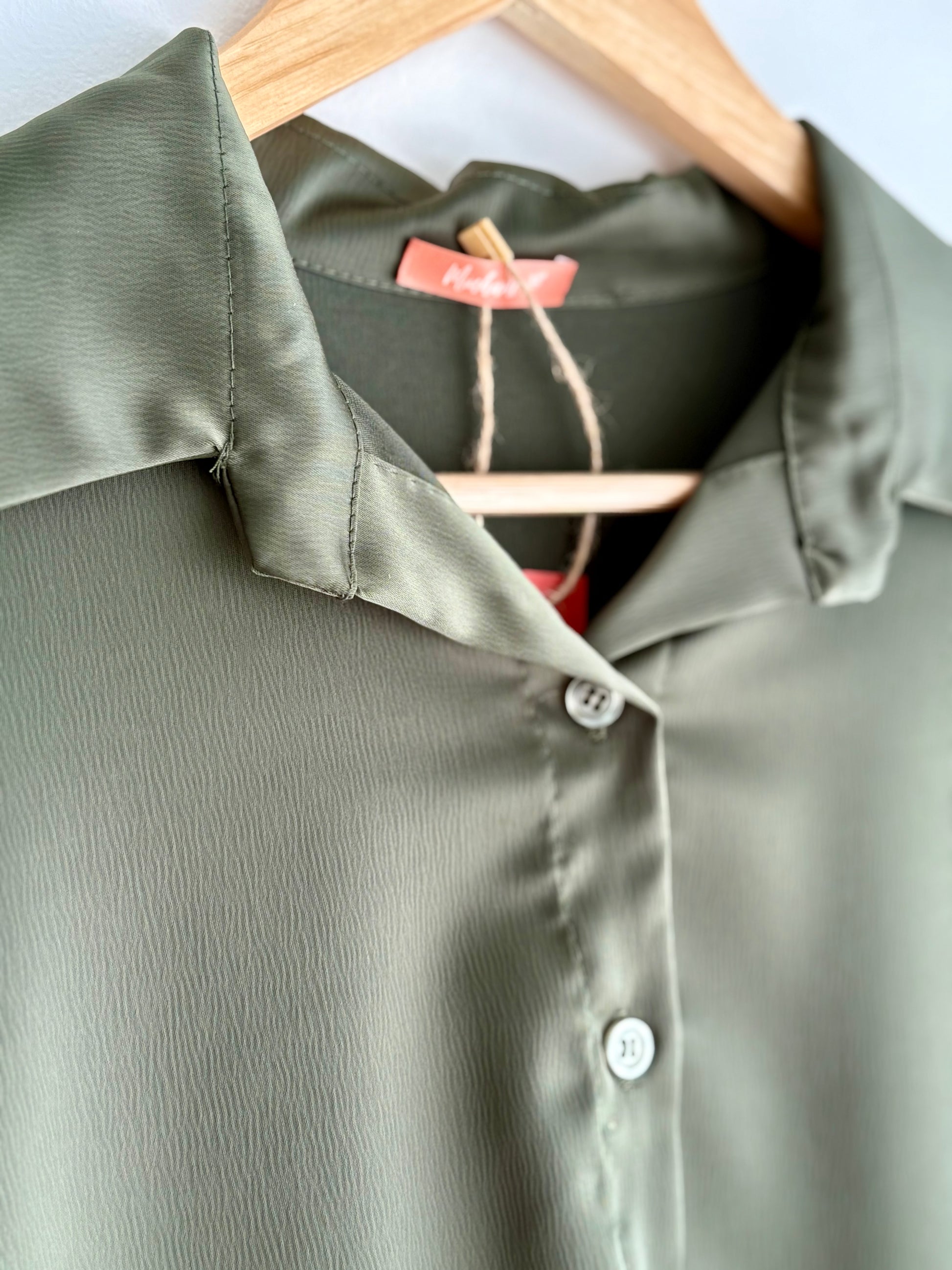 Este conjunto de 3 peças é um essencial no seu guarda-roupa! De toque acetinado, é a escolha perfeita para qualquer ocasião: aposte em acessórios descontraídos e confortáveis para um look de dia-a-dia ou use-o com uns saltos altos para uma saída nocturna. Composto por camisa, calças e top, é um conjunto versátil que não pode perder!