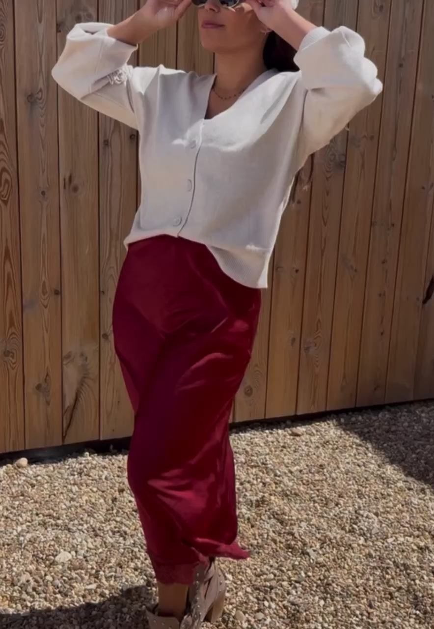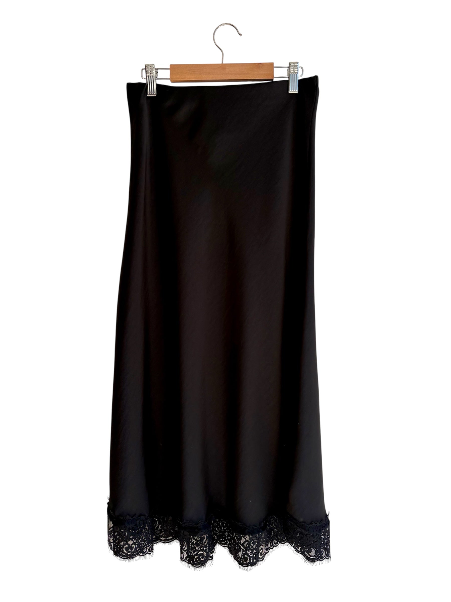 Um clássico intemporal que alia elegância e conforto! Esta saia de toque suave oferece uma linha fluída e sofisticada, a terminar numa delicada renda, para um toque mais feminino e romântico. Perfeita para usar em diversas situações, seja para um look mais formal conjugada com saltos altos e blusas, ou para um look mais prático, combinando com malhas e sapatos rasos.